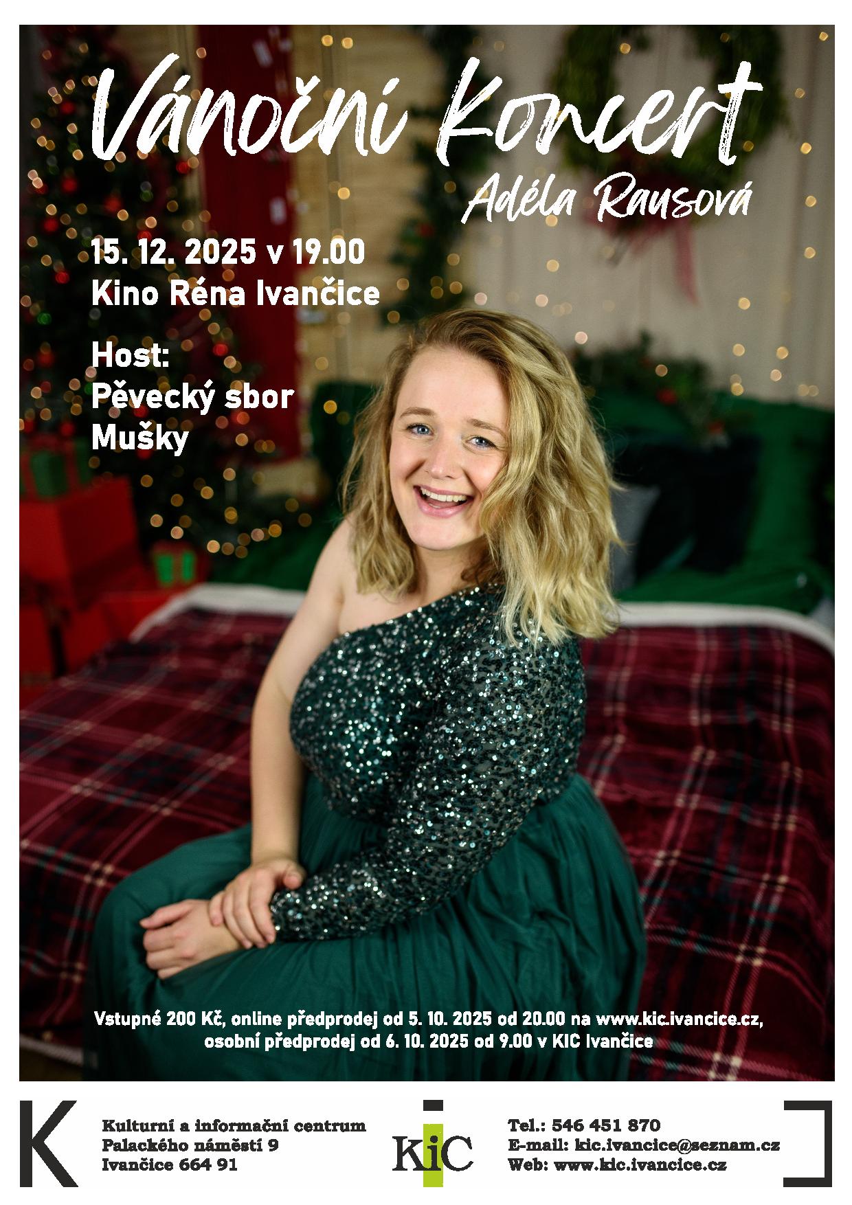 Zveme vás na Vánoční koncert zpěvačky Adély Rausové, který pohladí duši a navodí sváteční atmosféru. V podání oblíbené ivančické interpretky zazní známé (nejen vánoční) melodie, doplněné její osobitou energií a citem pro hudbu. Nechte se unést kouzlem adventního času a prožijte společně chvíle radosti, klidu a pohody.